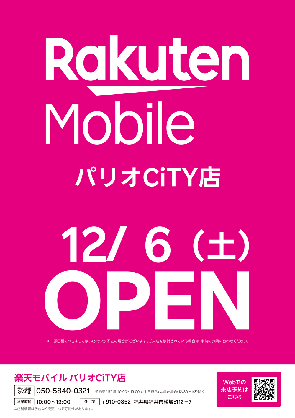 12月6日(土)Rakuten Mobile パリオCiTY店OPEN!使い方に合わせて選べてギガも通話も無制限で最安!最強プラン『最強U-NEKT』など料金プランいろいろ!
