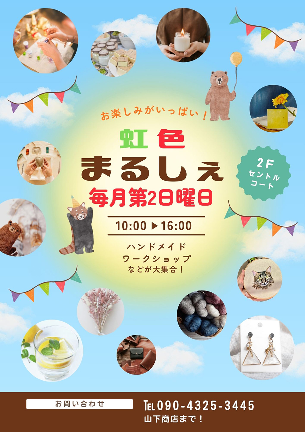 毎月第2日曜日開催!虹色まるしぇ■日時:3月8日(日) 10:00~16:00■会場:2階セントラルコート虹色まるしぇへの出店お問い合わせは℡090-4325-3445 山下商店まで!